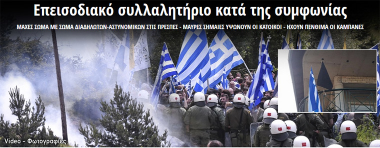 Επεισοδιακή διαδήλωση διαμαρτυρίας για τη συμφωνία πραγματοποιήθηκε λίγα χιλιόμετρα μακριά από τις Πρέσπες. Ομάδες πολιτών που αντιτίθενται στη συμφωνία και είχαν συγκεντρωθεί από νωρίς στο Πισοδέρι Φλώρινας προσπάθησαν να σπάσουν τον αστυνομικό κλοιό, εκσφενδονίζοντας αντικείμενα και πέτρες προς τις πολυάριθμες δυνάμεις των ΜΑΤ, που «απάντησαν» με εκτεταμένη χρήση χημικών.