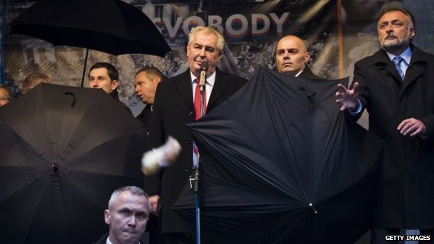 O πρόεδρος της Γερμανίας Γιοάχιμ Γκάουκ, που επισκέφθηκε την Πράγα μαζί με άλλους προέδρους χωρών της κεντρικής Ευρώπης με αφορμή την 25η επέτειο της πτώσης του κομμουνισμού, «επλήγη» στο κεφάλι από ένα αυγό που προοριζόταν για τον Tσέχο ομόλογό του Μίλος Ζέμαν, ανακοίνωσε την Δευτέρα η προεδρία της Τσεχίας.