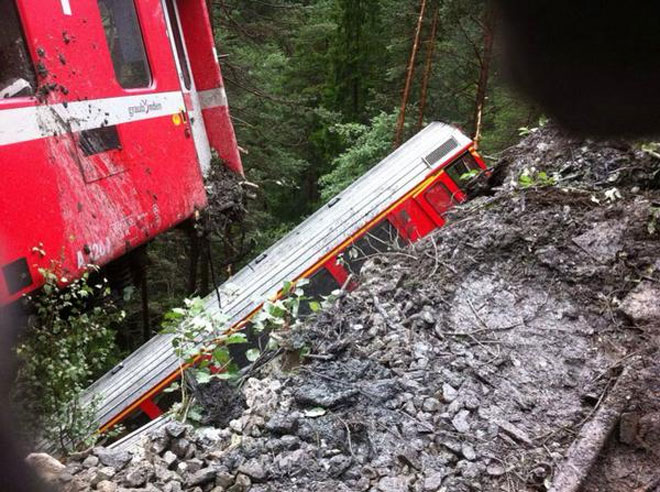 «Ένα τμήμα του τρένου εκτροχιάστηκε, καθώς παρασύρθηκε από μία κατολίσθηση» δήλωσε στο Γαλλικό Πρακτορείο ο εκπρόσωπος Τύπου της εταιρείας Σίμον Ράγκεθ, χωρίς να υπεισέλθει σε λεπτομέρειες.