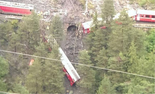 Το ατύχημα σημειώθηκε όταν το κινητήριο όχημα του τρένου έπεσε πάνω σε όγκο από χώμα και πέτρες που είχε καλύψει τις σιδηροδρομικές ράγες έπειτα από κατολίσθηση κοντά στην πόλη Τιεφενκάστελ στο καντόνι Γκρομπούεντεν, μετέδωσε το ελβετικό πρακτορείο ειδήσεων SDA, επικαλούμενο τη σιδηροδρομική εταιρεία.