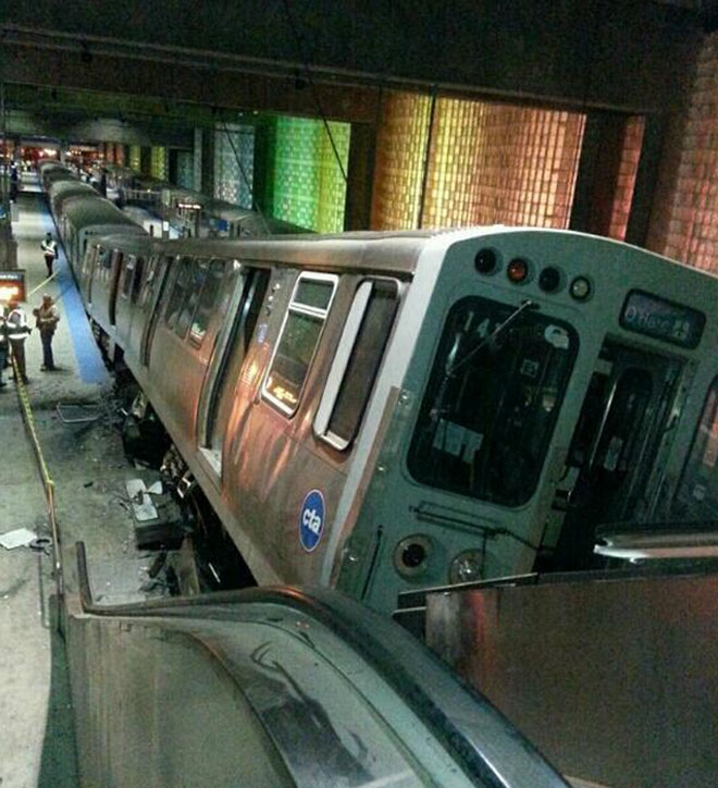 Τουλάχιστον 32 άνθρωποι τραυματίστηκαν, όταν τρένο χτύπησε σε πλατφόρμα στο αεροδρόμιο O’ Hare του Σικάγο και εκτροχιάστηκε.
