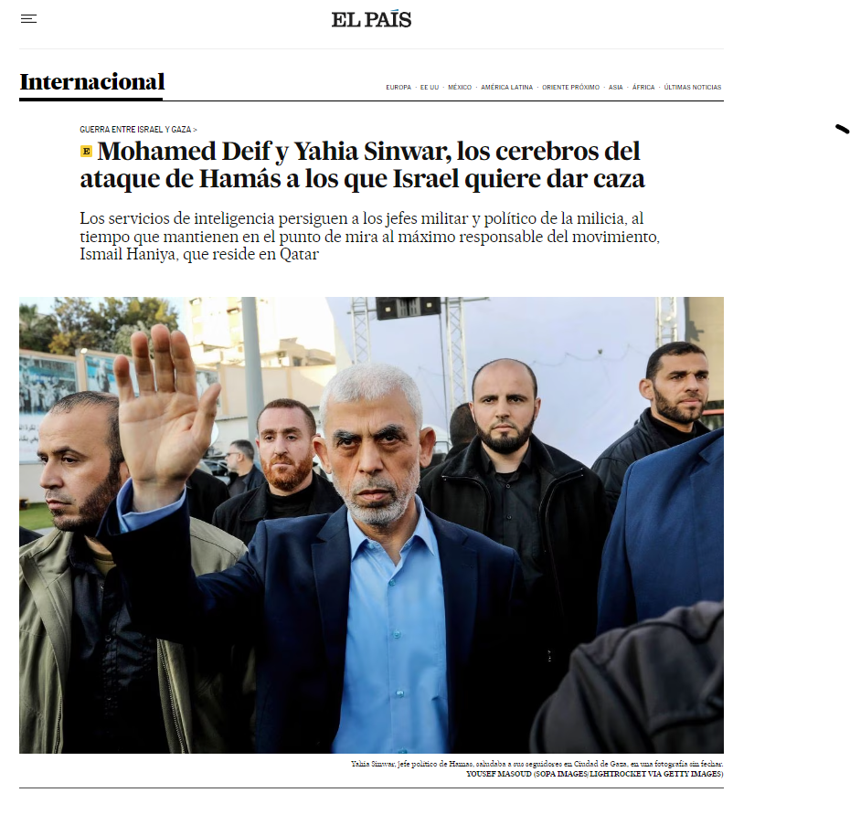 Ο Μοχάμεντ Ντέιφ και ο Γιαχία Σινγουάρ είναι οι εγκέφαλοι της επίθεσης της Χαμάς τους οποίους το Ισραήλ καταδιώκει, σύμφωνα με ένα ενδιαφέρον άρθρο που δημοσιεύει η ισπανική εφημερίδα, El País.