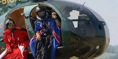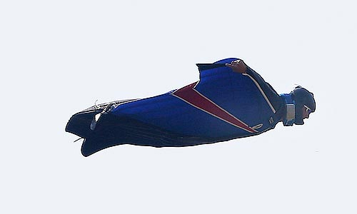 Ο παράτολμος άνδρας φορούσε μια ειδική στολή με ενσωματωμένα φτερά τα οποία του επέτρεψαν να επιβραδύνει σε τέτοιο βαθμό έτσι ώστε η πτώση του να μην είναι μοιραία.