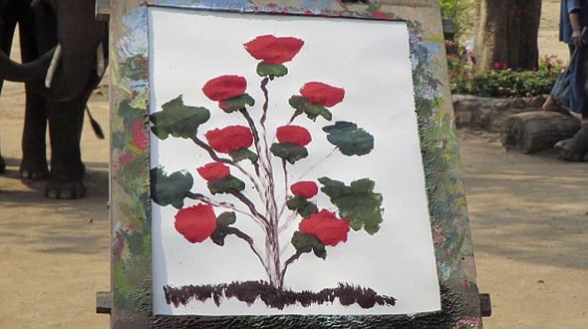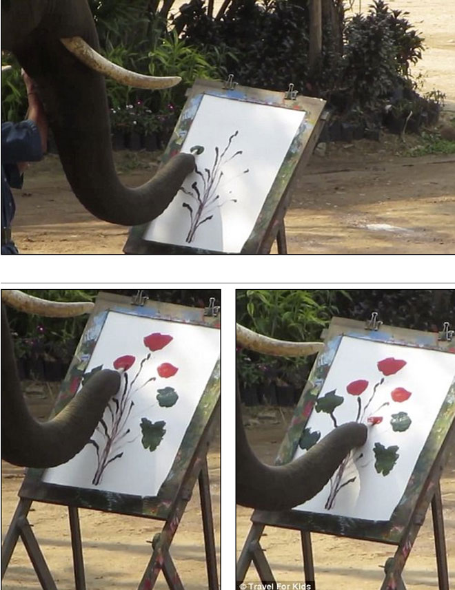 Ο θηλυκός ελέφαντας των φωτογραφιών που ακολουθούν, λατρεύει τη ζωγραφική και για να δημιουργήσει τα έργα του δεν χρειάζεται τίποτε άλλο παρά μία βούρτσα και την προβοσκίδα του… Και δίνει πολύ προσοχή στις λεπτομέρειες…