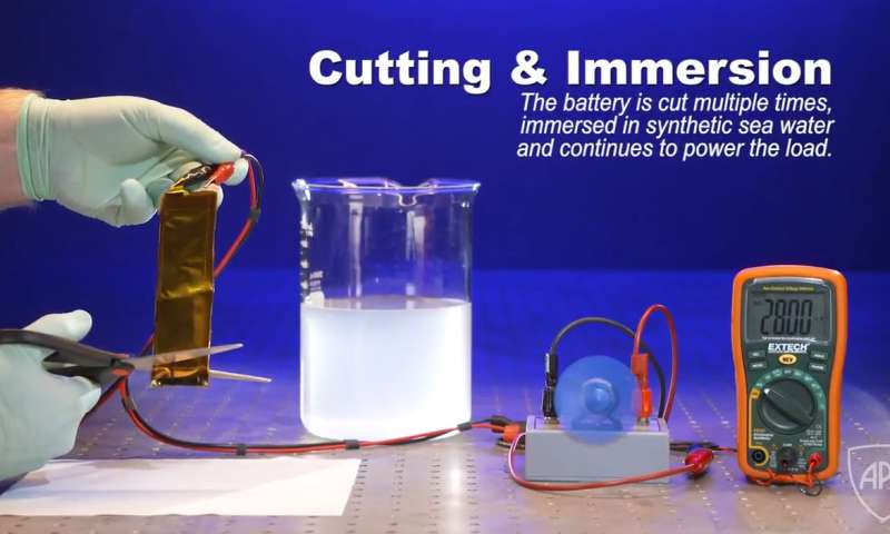Η νέα μπαταρία δεν είναι επικίνδυνη και επιπλέον είναι τόσο ανθεκτική, ώστε λειτουργεί ακόμη κι αν κάποιος την κόψει, τη βυθίσει σε θαλασσινό νερό ή την πυροβολήσει! Εννοείται ότι τίποτε από όλα αυτά δεν μπορεί να αντέξει μια συμβατική μπαταρία.