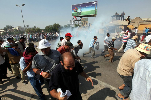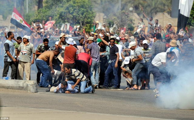 Στα περίχωρα της Ταχρίρ ακούγονταν επί ώρες πυροβολισμοί, ενώ οι διαδηλωτές των αντίπαλων στρατοπέδων πετούσαν οι μεν στους δε πέτρες πάνω στην γέφυρα της 6ης Οκτωβρίου. Παράλληλα ασθενοφόρα μετέφεραν τραυματίες.