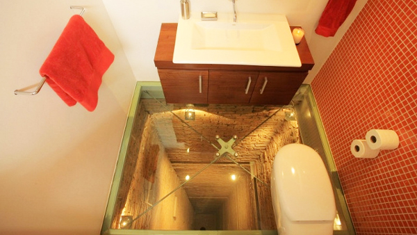 Το εν αχρηστία φρεάτιο του ανελκυστήρα μπορούσε να «μεταμορφωθεί» σε ένα εντυπωσιακό μπάνιο από γυαλί, δίνοντας τη δυνατότητα στο χρήστη να βλέπει προς τα κάτω ολόκληρο το ασανσέρ! Και έτσι ακριβώς έγινε.