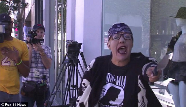 «Οι Καρντάσιαν θα εκτελεστούν αν πατήσουν το πόδι τους σε κομμουνιστικό έδαφος», φώναξε η γυναίκα καθώς κρατούσε τη ματσέτα, σύμφωνα με το βίντεο που έδειξε το τηλεοπτικό δίκτυο FOX 11 του Λος Αντζελες.