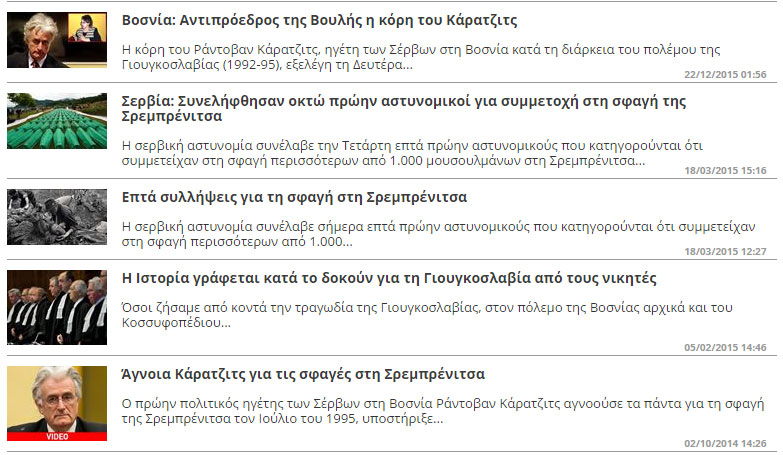 Δικαστές του ΟΗΕ καταδίκασαν σε ποινή φυλάκισης 40 ετών τον πρώην ηγέτη των Σέρβων της Βοσνίας-Ερζεγοβίνης, Ράντοβαν Κάρατζιτς, καθώς τον έκριναν ένοχο για εγκλήματα κατά της ανθρωπότητας σε κοινότητες της Βοσνίας, αλλά και για την γενοκτονία στην Σρεμπρένιτσα.