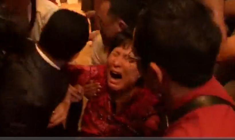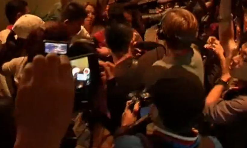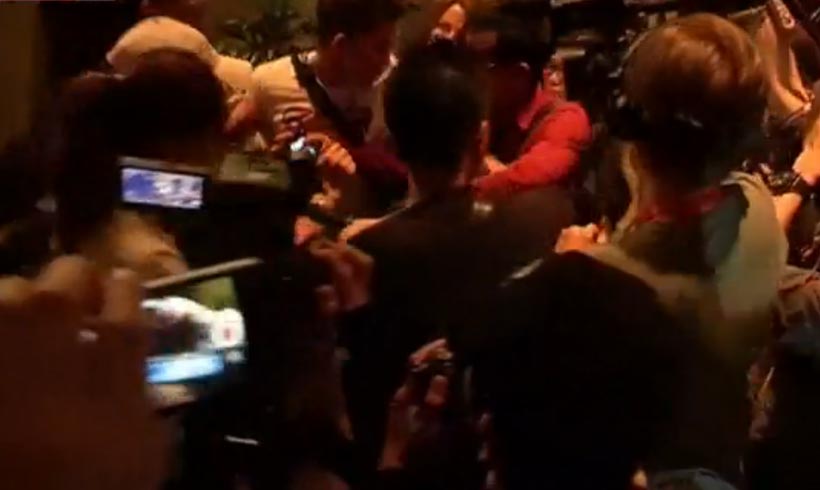 Κατά την διάρκεια της συνέντευξης Tύπου για το αγνοούμενο αεροσκάφος της Malaysia Airlines συγγενείς των αγνοούμενων επιβατών διαμαρτυρήθηκαν σηκώνοντας πανό και φωνάζοντας.