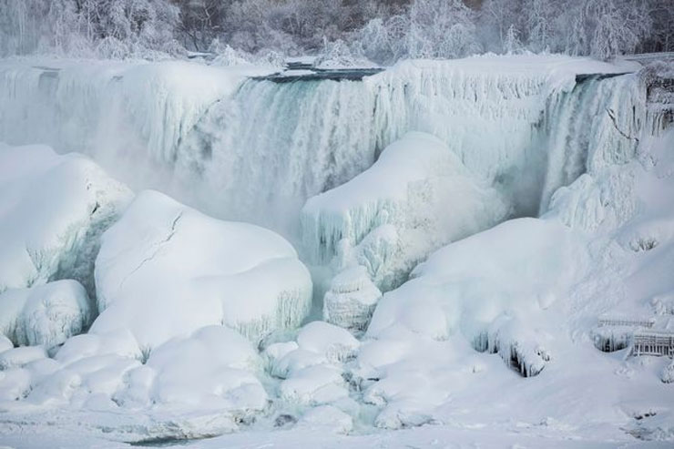 Οι καταρράκτες του Νιαγάρα πάγωσαν…! Τα ακραία καιρικά φαινόμενα όμως δεν αποθάρρυναν τους τουρίστες, οι οποίοι έσπευσαν να φωτογραφίσουν το πολύ ασυνήθιστο τοπίο.