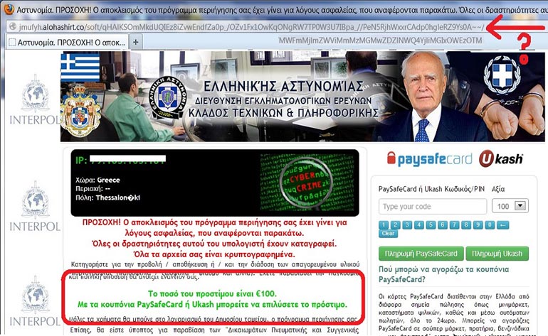 Στην Ελλάδα έχει απειλήσει χιλιάδες χρήστες υπολογιστών ζητώντας λύτρα με τη μορφή ψεύτικου προστίμου λόγο παράνομης χρήσης του υπολογιστή.