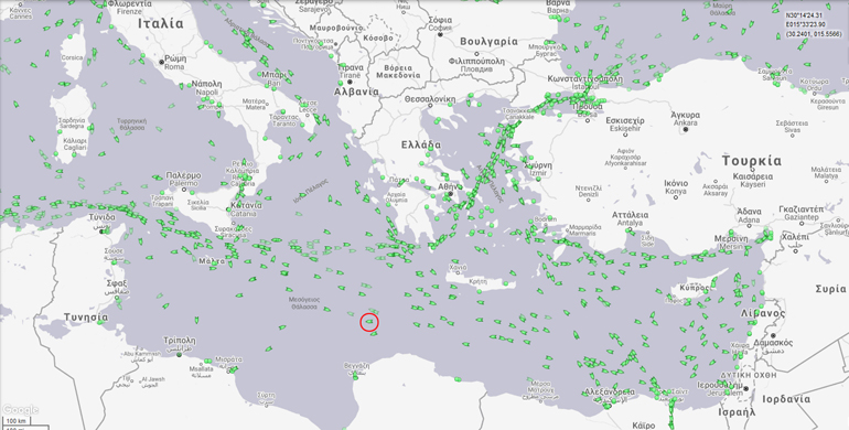 Η φρεγάτα Σπέτσαι παρακολουθεί διακριτικά από απόσταση 10 μιλίων και το τουρκικό φορτηγό Cirkin, καθώς και τις τρεις τουρκικές φρεγάτες.