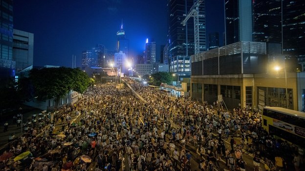 «Δεν θέλουμε η χώρα μας να παραδοθεί στην Κίνα. Δεν θα σταματήσουμε αν δεν προωθηθούν δημοκρατικές μεταρρυθμίσεις» σχολιάζει ένας διαδηλωτής στο BBC, ενώ η Yvonne Leung, εκπρόσωπος των μαθητών του Χονγκ Κονγκ και διοργανώτρια των κινητοποιήσεων, δήλωσε ότι οι διαδηλωτές θα παραμείνουν έξω από το κεντρικό κτίριο της κυβέρνησης σε μια πράξη πολιτικής ανυπακοής.