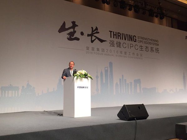 Φωτογραφίες του Γκούο από τη σημερινή εμφάνισή του στο συνέδριο της Fosun:
