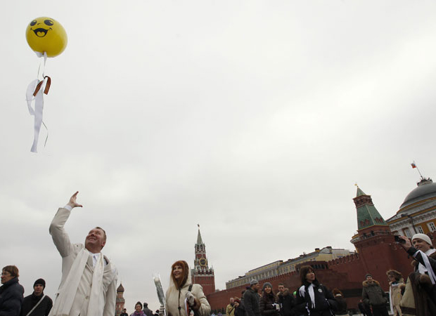 Αυτήν την Κυριακή όμως οι διαδηλωτές, φορώντας τις χαρακτηριστικές λευκές κορδέλες ή κρατώντας λευκά λουλούδια, κατάφεραν να προσεγγίσουν την πλατεία και να περπατήσουν κάτω από τα τείχη του Κρεμλίνου.