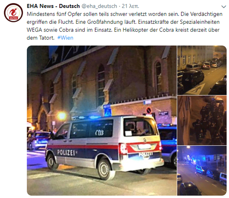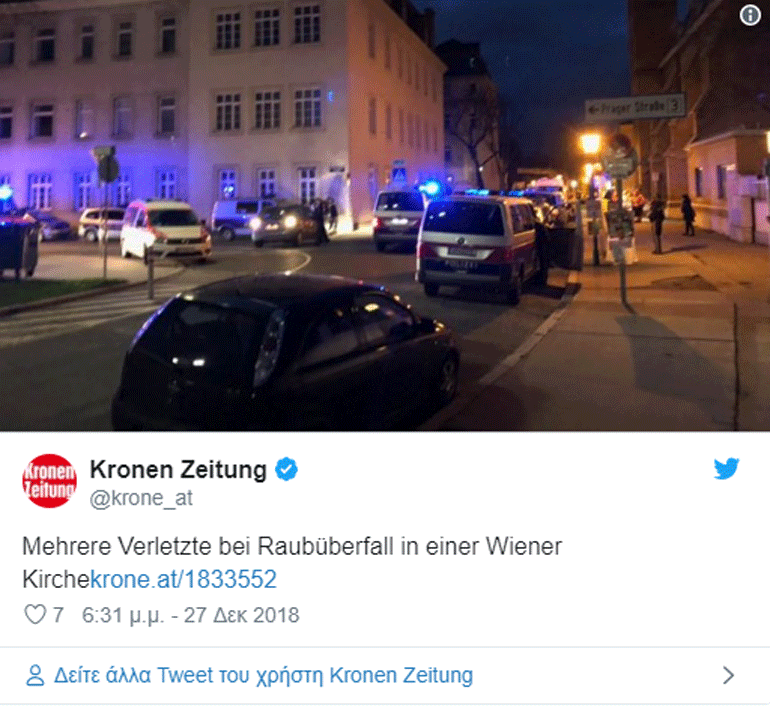 Σύμφωνα με την εφημερίδα Kronen Zeitung δύο ένοπλοι επιτέθηκαν το μεσημέρι της Πέμπτης σε μια καθολική εκκλησία.