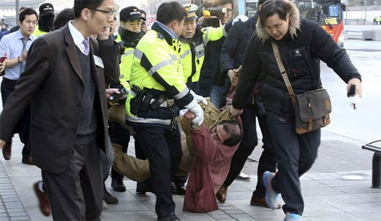 Αυτόπτες μάρτυρες ανέφεραν πως ο ένοπλος, ελάχιστα δευτερόλεπτα πριν από την επίθεση, φώναξε: Η Βόρεια και η Νότια Κορέα πρέπει να ενωθούν. “Όχι” στα πολεμικά γυμνάσια».