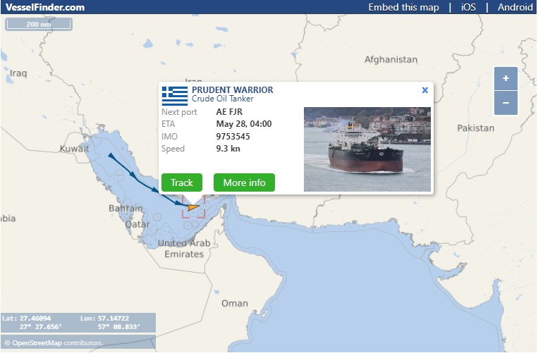 To πλοίο αναχώρησε από το λιμάνι Αλ Μπάσραχ και την ώρα της επίθεσης ταξίδευε με μέση ταχύτητα 12,5 κόμβων. Το δεύτερο δεξαμενόπλοιο είναι το «Prudent Warrior», της εταιρείας Polembros Shipping Limited συμφερόντων του Σπύρου Πολέμη.