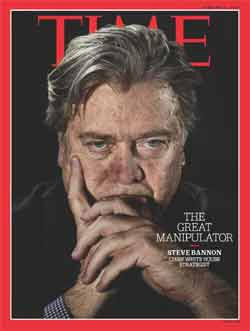 Το περιοδικό ΤΙΜΕ στο τεύχος της 2 Φεβρουαρίου έχει τίτλο άρθρου: Is Steve Bannon the Second Most Powerful Man in the World? (Είναι ο Στηβ Μπάνον ο δεύτερος πλέον Ισχυρός Άνθρωπός στον Κόσμο;).
