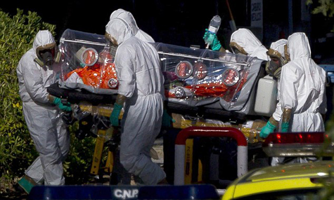 Όπως έγινε γνωστό σήμερα διακομίστηκε με ειδικά διαμορφωμένο αεροσκάφος στην Ισπανία ένας ιερέας που κόλλησε τον ιό στη Λιβερία.