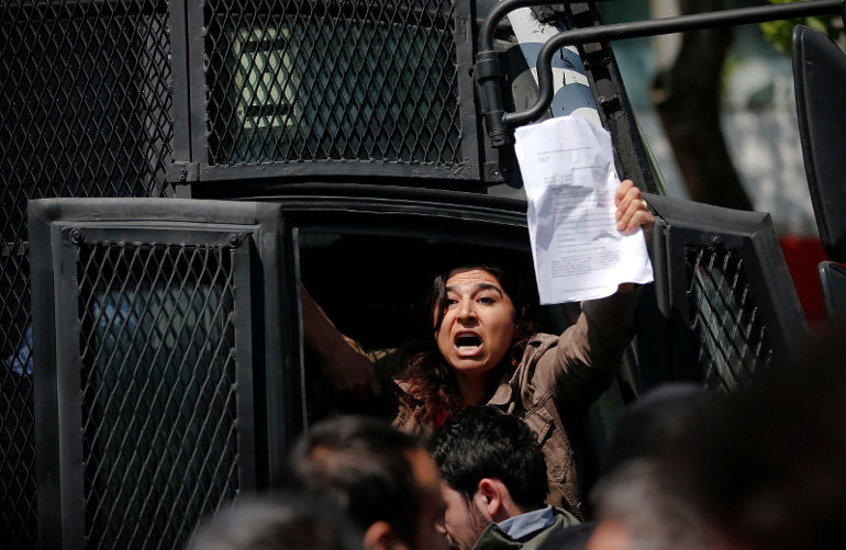 Οι υποστηρικτές της αντιπολίτευσης που επιχείρησαν να μεταβούν και να διασπάσουν τον ισχυρό αστυνομικό κλοιό στην πλατεία Ταξίμ απωθήθηκαν βίαια, ενώ αρκετοί συνελήφθησαν, με τους αστυνομικούς να ακινητοποιούν ορισμένους εξ αυτών ρίχνοντάς τους στο έδαφος, μετέδωσε ένας δημοσιογράφος του Γαλλικού Πρακτορείου. Το τουρκικό πρακτορείο ειδήσεων Anadolu μετέδωσε ότι 26.000 αστυνομικοί κινητοποιήθηκαν σήμερα στην Κωνσταντινούπολη, με τη συνδρομή τριών ελικοπτέρων, 85 οχημάτων με κανόνια νερού και 67 θωρακισμένων οχημάτων.