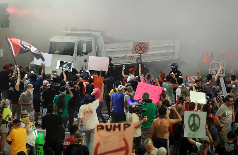 Σε χρήση καπνογόνων προχώρησε η αστυνομία στις ΗΠΑ για να διαλύσει συγκέντρωση διαδηλωτών πριν από ομιλία του Αμερικανού προέδρου Ντόναλντ Τραμπ, στο Φοίνιξ της Αριζόνα.