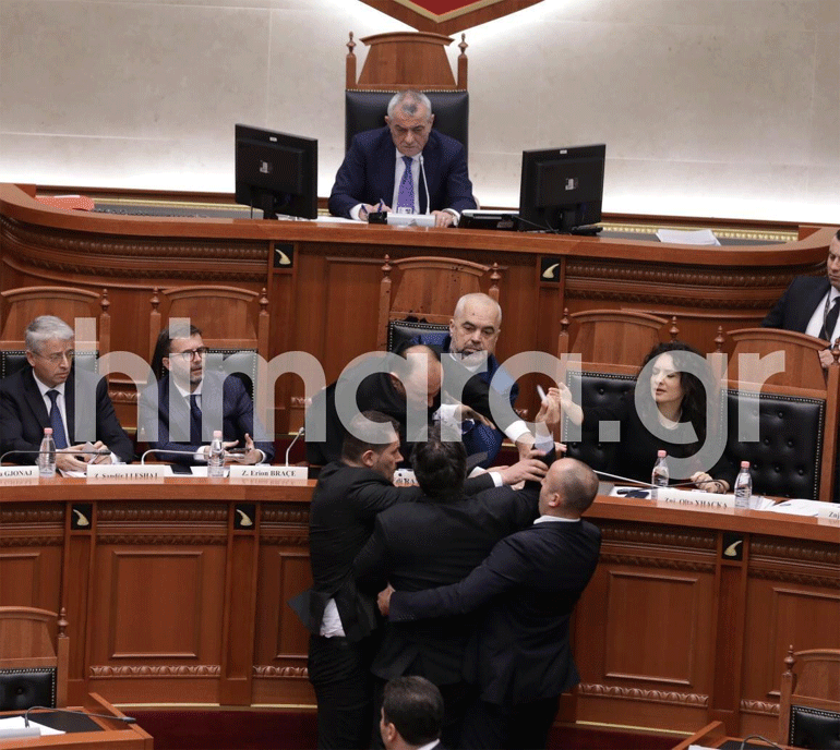 Σε εικόνες που μεταδόθηκαν από τοπικούς τηλεοπτικούς σταθμούς, ο βουλευτής του Δημοκρατικού Κόμματος Έντι Παλόκα φαίνεται να τρέχει προς τον σοσιαλιστή Έντι Ράμα κρατώντας στο χέρι του μια σύριγγα. Ο Παλόκα, ο οποίος είναι αντιπρόεδρος του Κοινοβουλίου, έριξε στη συνέχεια μελάνι στο πρόσωπο του πρωθυπουργού, πριν τεθεί υπό έλεγχο από την υπηρεσία ασφαλείας.