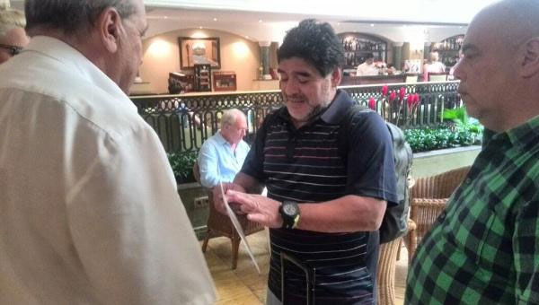 Η ιστοσελίδα του δικτύου Telesur δημοσίευσε φωτογραφίες του Μαραντόνα να κρατά και να διαβάζει μια ολιγοσέλιδη επιστολή με την υπογραφή του 88χρονου Φιντέλ Κάστρο.