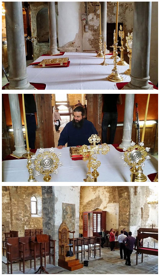 Εξω από την εκκλησία στήθηκε ένα τραπέζι όπου οι πιστοί μπορούν να βάλουν τον οβολό τους και να πάρουν τα κεριά τους.