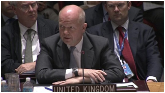 Ο υπουργός Εξωτερικών της Βρετανίας, William Hague, χαρακτήρισε «κομβικό» το ψήφισμα, επιμένοντας ότι είναι απαραίτητη η άμεση εφαρμογή του.