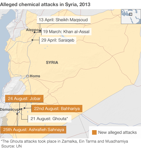 (Χάρτης με τις τοποθεσίες όπου έχει γίνει χρήση χημικών όπλων)