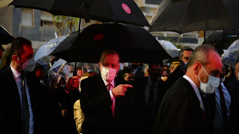 H επίσκεψη του Τούρκου Προέδρου στα κατεχόμενα ολοκληρώθηκε αργά το βράδυ της Κυριακής, αφού προηγουμένως είχε δηλώσει ότι «είπαμε να κάνουμε ένα βήμα, να διανύσουμε μια απόσταση, γιατί η διεθνής κοινότητα ποτέ δεν έλαβε υπόψην στον δίκαιο διαμοιρασμό το ψευδοκράτος». Ο Πρόεδρος Ερντογάν ανέφερε επίσης ότι μετά το δημοψήφισμα του 2004 και παρά τις προειδοποιήσεις, η ΕΕ έκανε μέλη της την «νότια Κύπρο» – κατά την έκφρασή του – και άφησε την «βόρεια Κύπρο» στην απομόνωση.