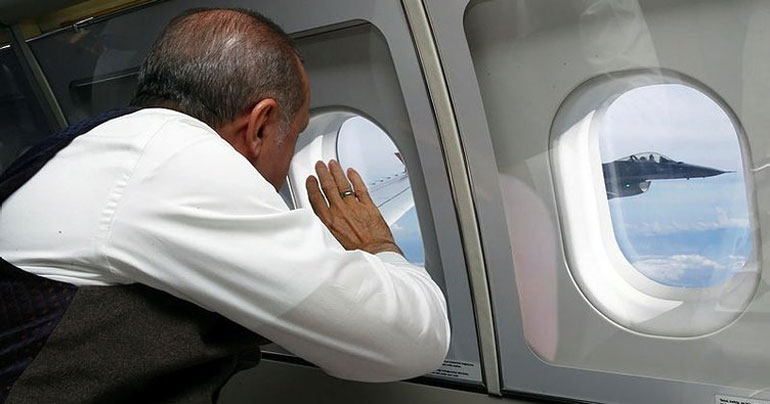 Αξίζει να σημειωθεί, ότι οι τελευταίες μετακινήσεις του Tούρκου προέδρου εντός της χώρας γίνονται με συνοδεία μαχητικών αεροσκαφών. Ειδικότερα στην πόλη Μαρντίν μετέβη με ιδιωτικό αεροσκάφος το οποίο συνόδευαν δύο μαχητικά, ενώ στο αεροδρόμιο της πόλης τέθηκαν σε ισχύ δρακόντεια μέτρα ασφαλείας, με ελεύθερους σκοπευτές στα γύρω κτήρια.