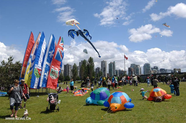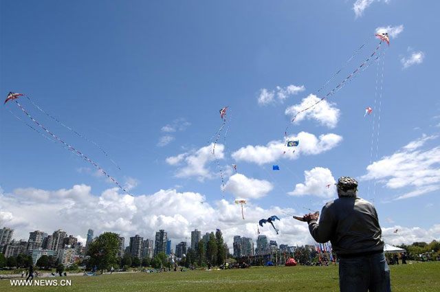 Χαρταετοί διαφόρων μεγεθών και σχημάτων κατέκλυσαν την Κυριακή τον ουρανό στα περίχωρα του Βανκούβερ, στο πλαίσιο του 38ου Ετήσιου Φεστιβάλ Χαρταετού.