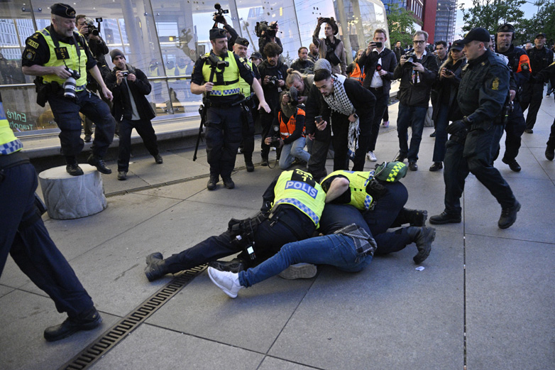 Η αστυνομία διέλυσε σήμερα πλήθος φιλοπαλαιστίνιων διαδηλωτών που είχαν συγκεντρωθεί γύρω από το Malmö Arena, τον χώρο στην πόλη Μάλμε που διεξάγεται ο τελικός του διαγωνισμού μουσικής Eurovision, ανέφερε το Γαλλικό Πρακτορείο.