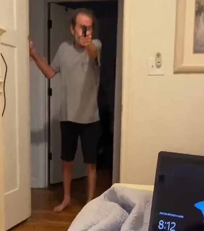 Ένα σοκαριστικό βίντεο ντοκουμέντο δείχνει έναν 68χρονο να πυροβολεί και να τραυματίζει τον γιο της συντρόφου του ενώ καβγαδίζουν.