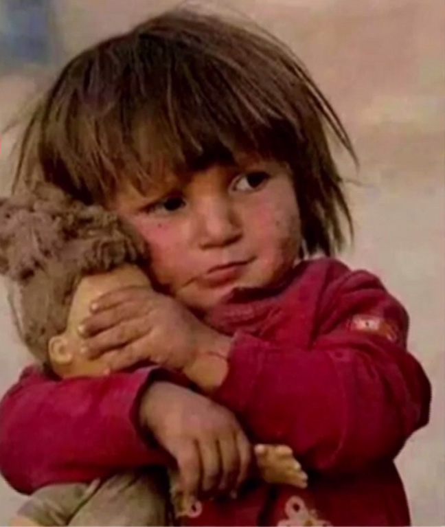 Το παγκόσμιο σύστημα προπαγάνδας -συμπεριλαμβανομένου και του ελληνικού- ανεξαρτήτως προέλευσης και πολιτικών ή κοινωνικών σκοπιμοτήτων, παρουσίασε την είδηση ως εξής: προέβαλε τη φωτογραφία του κοριτσιού, «ενημερώνοντας» ότι η ανήλικη κλείνει τα μάτια της κούκλας για να μη βλέπει τα «δεινά του πολέμου στη Συρία».