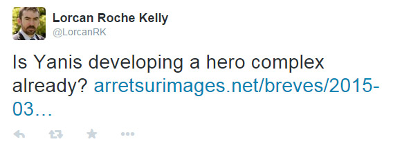 Ο Μάρκο Ζατερίν από τη «La Stampa» έγραψε στο Τwitter του: «Περισσότερος Βαρουφάκης από το Paris Match. Δεν θα αρέσει αυτό στους Έλληνες, έτσι δεν είναι;». Επιθετικός είναι ο Λόρκαν Ρος Κέλι του Bloomberg, ο οποίος αναρωτιέται αν «ο Γιάνης αναπτύσσει ήδη ένα κόμπλεξ ήρωα».