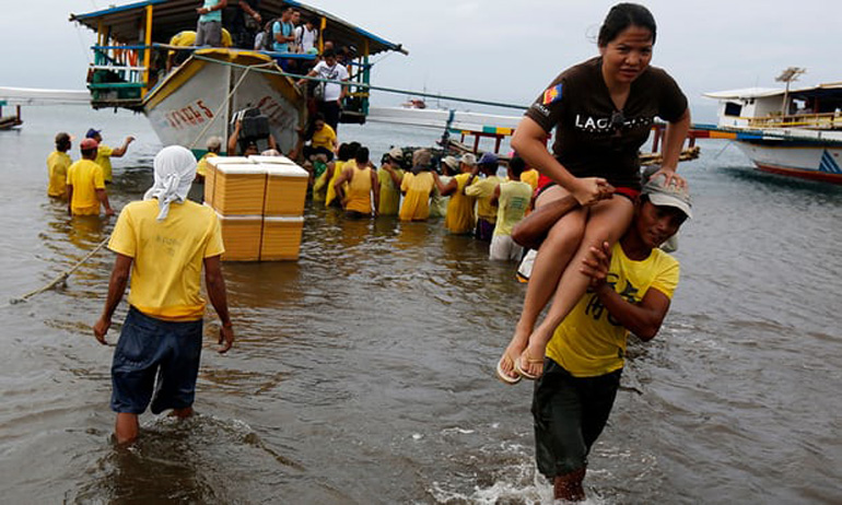 Σε εικόνες που μεταδόθηκαν από το δίκτυο ABS-CBN φαίνονται ασθενοφόρα την ώρα που ετοιμάζονται να μεταφέρουν κάποιους από τους διασωθέντες στο νοσοκομείο, ενώ σε αυτές διακρίνονται επίσης τέσσερις σοροί μέσα σε σάκους στο έδαφος.