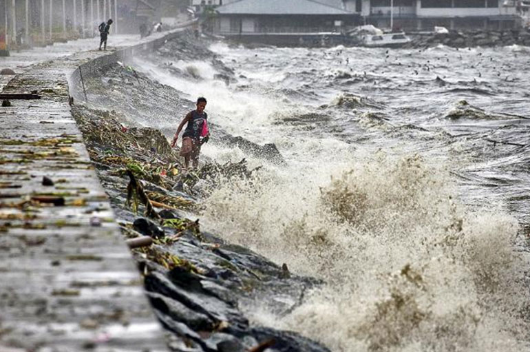 Ο Κoπού έφτασε εξαιρετικά ισχυρός στα παράλια των Φιλιππίνων τις πρώτες ώρες της Κυριακής, σηκώνοντας στον αέρα στέγες σπιτιών και δέντρα.