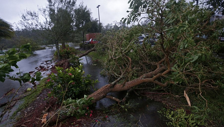 Στη Φλόριντα, που μετατράπηκε σε μια απέραντη λίμνη, μέχρι στιγμής έχουν καταγραφεί τρεις θάνατοι, μεγάλες υλικές ζημιές σε κτήρια, εκριζώσεις δέντρων κλπ.
