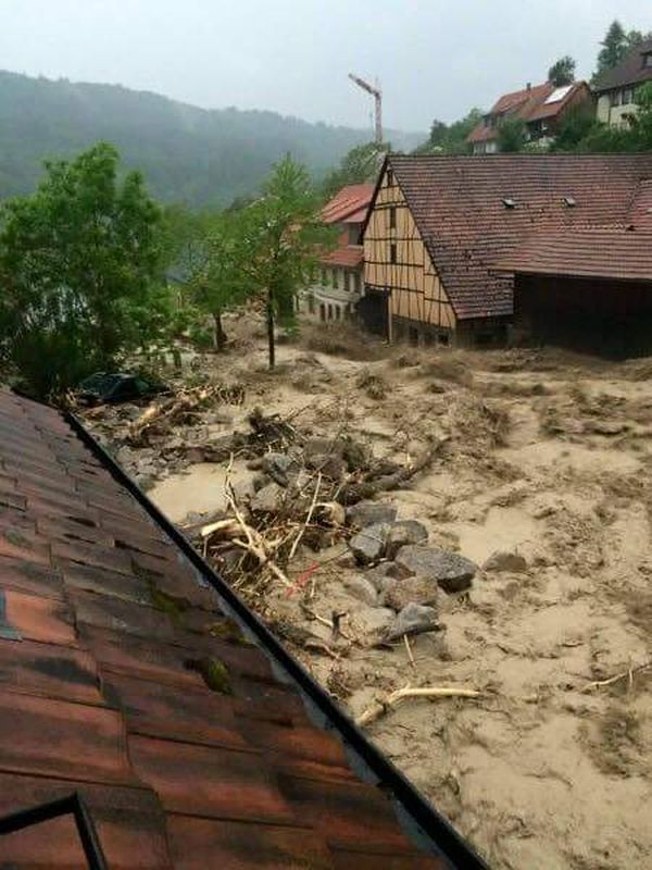 Εικόνες βιβλικής καταστροφής αντίκρισαν σήμερα το πρωί οι κάτοικοι του Künzelsau και της γύρω περιοχής (Braunsbach και Weißbach) της Hohenlohekreis στην Baden-Württemberg.