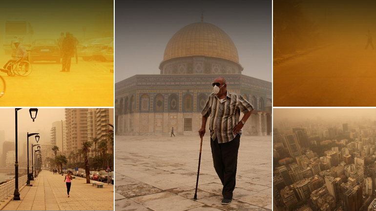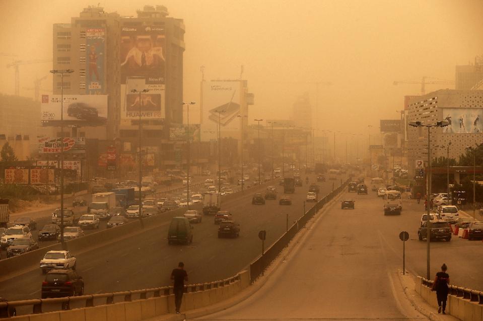 Η ορατότητα περιορίστηκε σε μερικές εκατοντάδες μέτρα δίπλα στη θάλασσα στην πρωτεύουσα του Λιβάνου Βηρυτό όπου η υγρασία βρίσκεται σε υψηλά επίπεδα. Πολλοί εργάτες φορούσαν σήμερα χειρουργικές μάσκες.
