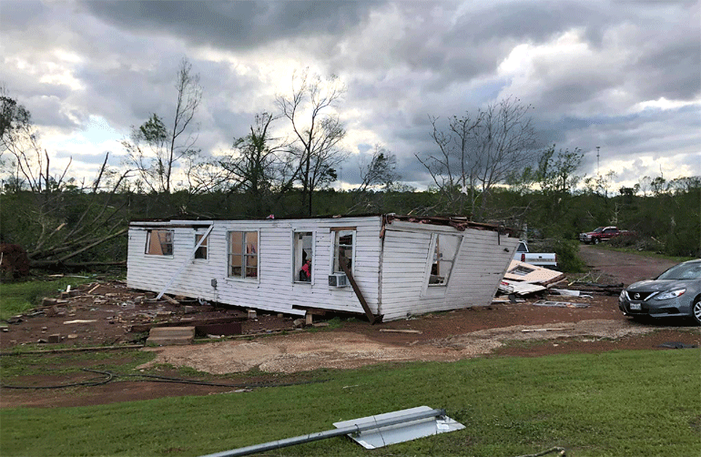 Συνολικά 17 ανεμοστρόβιλοι αναφέρθηκαν κατά μήκος του αμερικανικού νότου, από το Τέξας στην Αλαμπάμα, χθες και σήμερα, εξήγησε ο Όραβεκ.