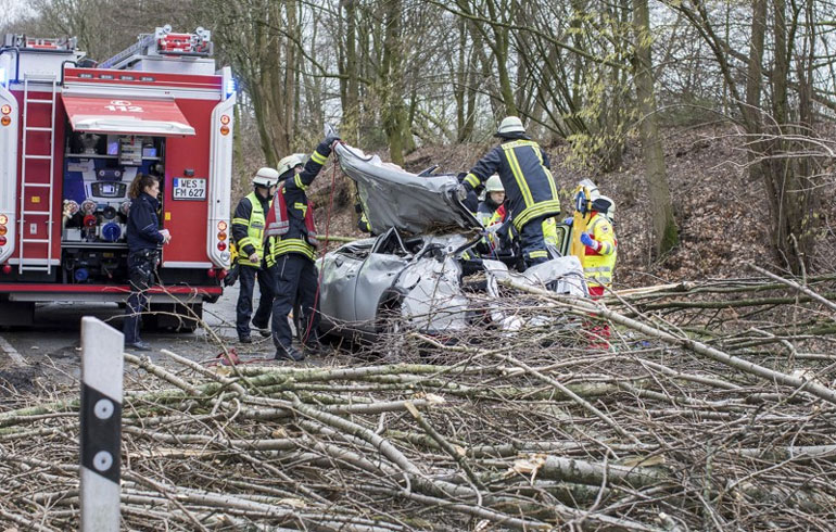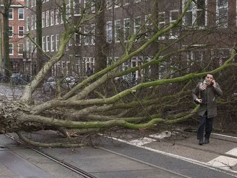 Στο Βέλγιο, μία οδηγός σκοτώθηκε από πτώση δέντρου στο αυτοκίνητό της.