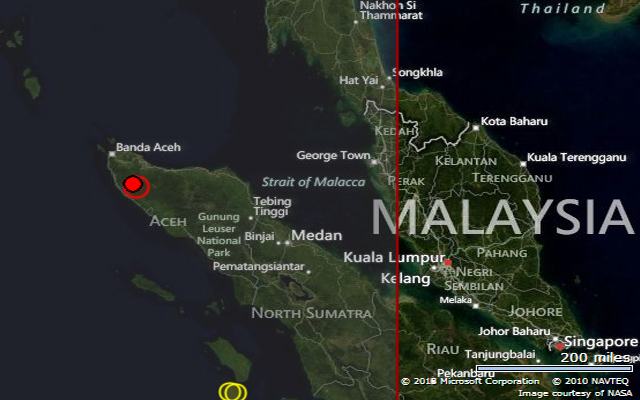 Η ισχυρή σεισμική δόνηση, μεγέθους 6,1 βαθμών της κλίμακας Ρίχτερ, σημειώθηκε στις 00.38 τα μεσάνυχτα της Δευτέρας (ώρα Ελλάδος) στην επαρχία του Ατσέχ και συγκεκριμένα 63 χλμ. νότια της πόλης Σίγκλι και 91 χλμ. νοτιοανατολικά της πόλης Μπάντα Ατσέχ (τοπική πρωτεύουσα), σύμφωνα με προκαταρκτική εκτίμηση του Αμερικανού Γεωφυσικού Ινστιτούτου (USGS). Το εστιακό βάθος ήταν 2 χλμ. και 26 λεπτά αργότερα σημειώθηκε ισχυρός μετασεισμός 4,7 βαθμών της κλίμακας Ρίχτερ.