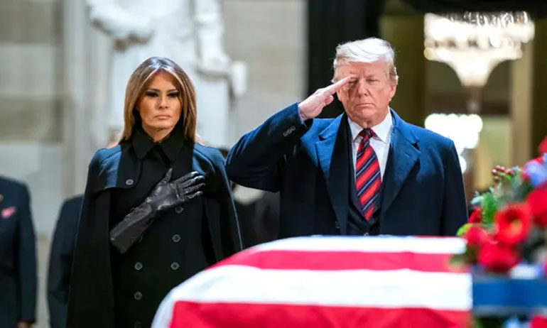 Ο πρόεδρος των ΗΠΑ Ντόναλντ Τραμπ απέτισε φόρο τιμής τη Δευτέρα το βράδυ στον Ρεπουμπλικάνο προκάτοχό του στην προεδρία Τζορτζ Χέρμπερτ Ουόκερ Μπους, η σορός του οποίου εκτίθεται σε δημόσιο προσκύνημα στο Καπιτώλιο στην Ουάσινγκτον.