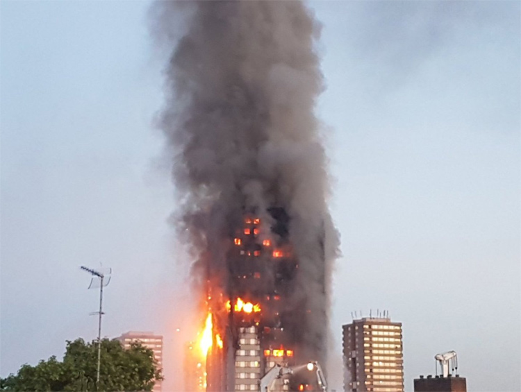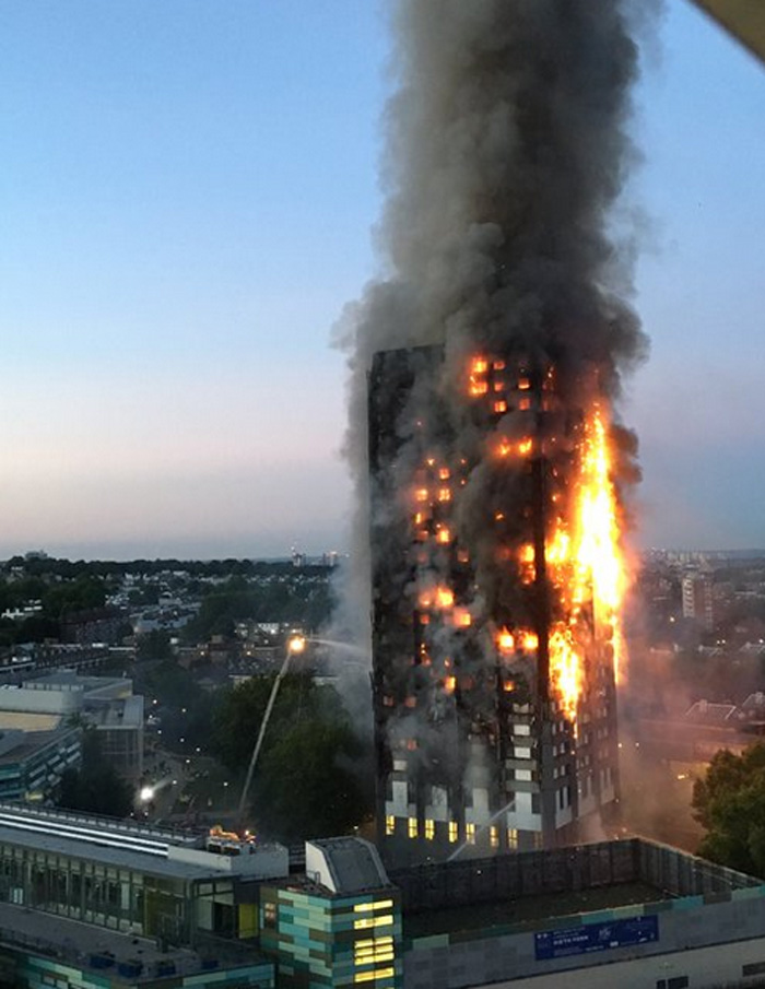 Οι φλόγες κυριολεκτικά κατάπιαν τον πύργο Grenfell στην οδό Latimer στο βόρειο Kensington, ενώ αυτόπτες μάρτυρες είπαν ότι πολύς κόσμος παγιδεύτηκε μέσα στα διαμερίσματα και κάποιοι έκαναν σήματα με φακούς από τα παράθυρα.