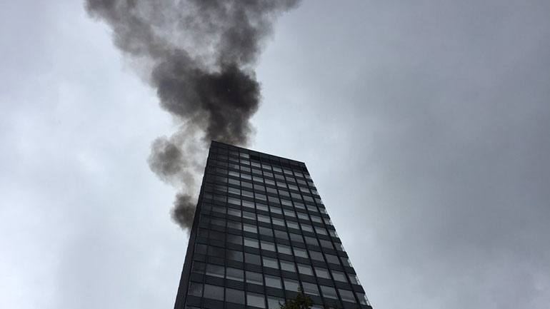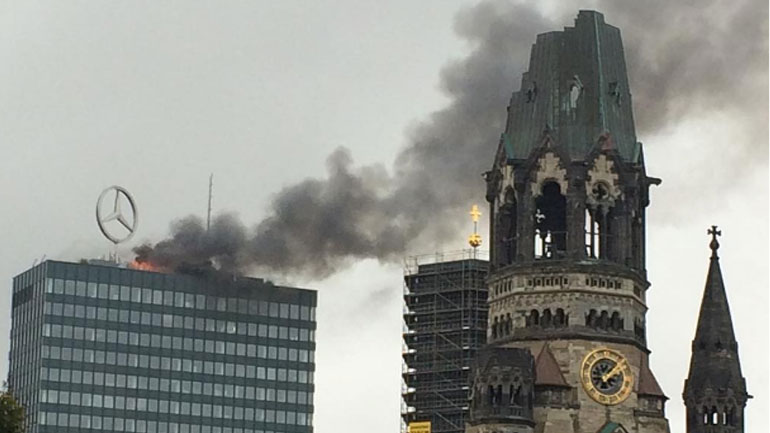 Πυκνοί καπνοί αναδύονται από την κορυφή του πύργου Europa Center στο Βερολίνο.